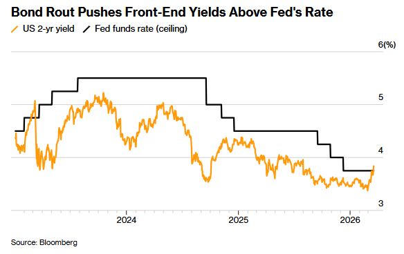 美债市场同样承压,收益率曲线显著走陡。基准十年期美债收益率突破关键水平,短期两年期收益率也出现明显上行。联邦基金利率期货显示,年内实施降息的可能性已明显下降,市场对政策路径的预期趋于谨慎。这种转变反映出投资者对通胀黏性与外部冲击的双重顾虑。